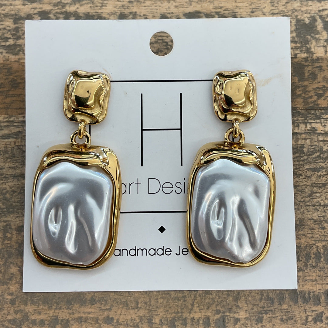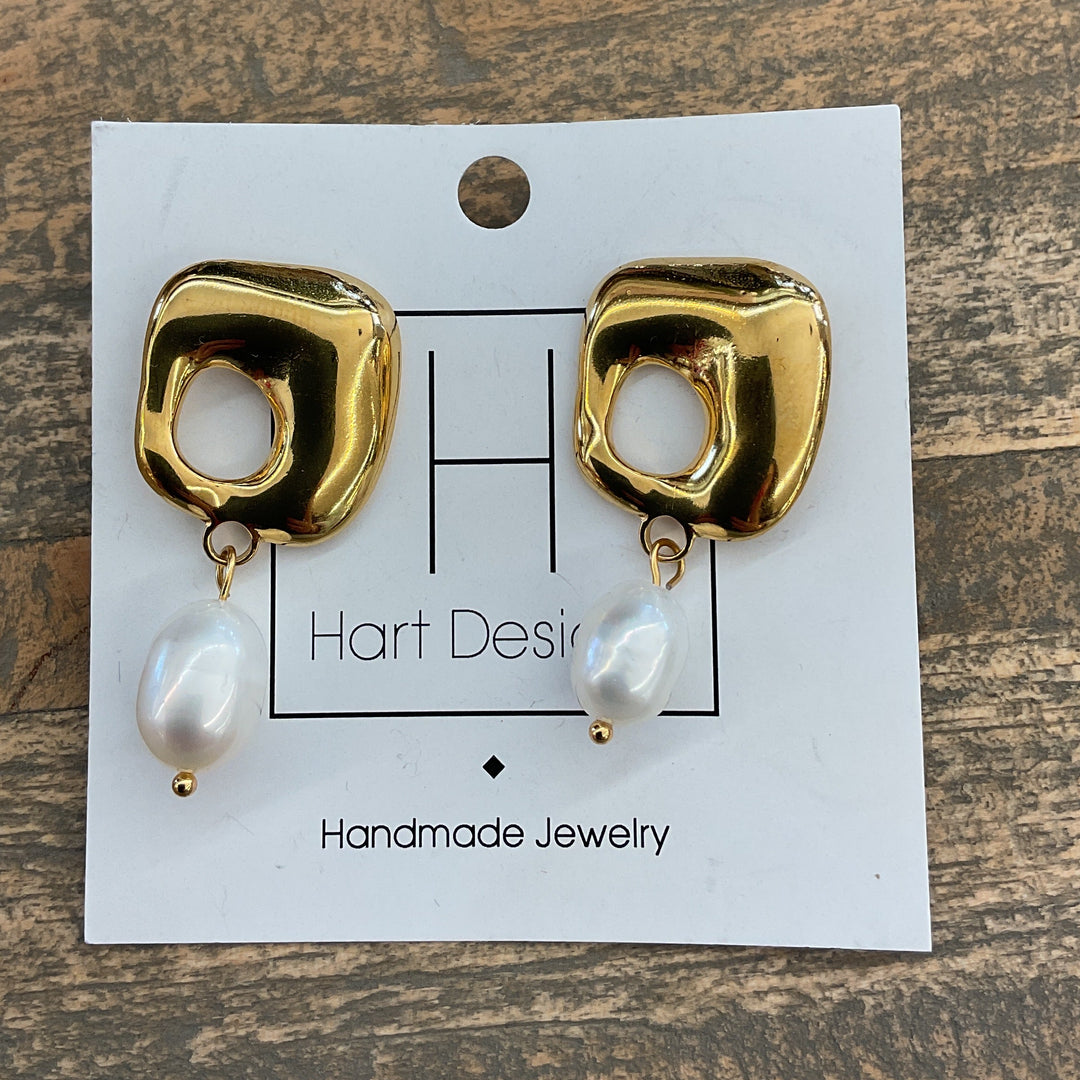 Gold & Pearl Abstract Earrings