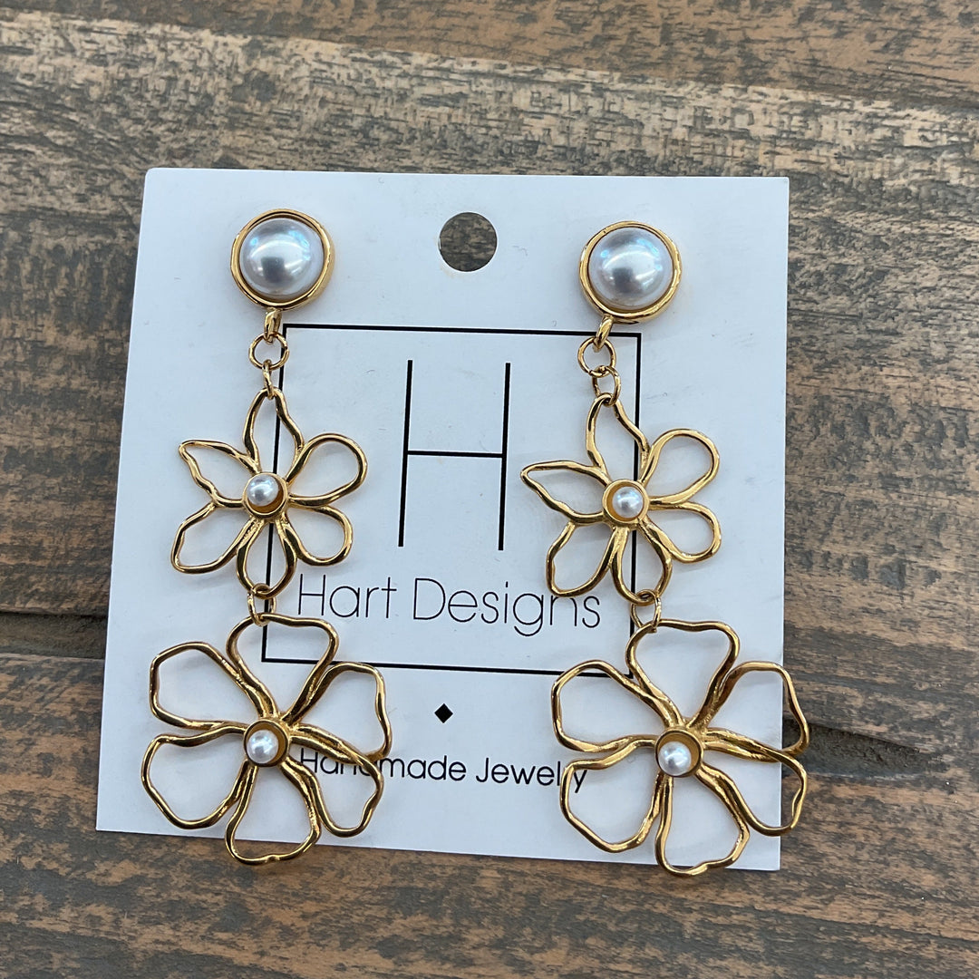 Gold & Pearl Flower Earrings