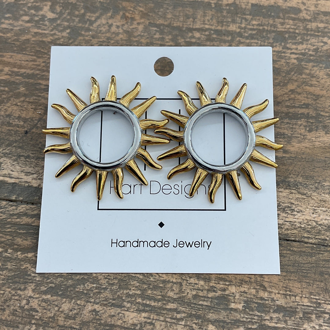 Silver & Gold Sun Rays Earrings
