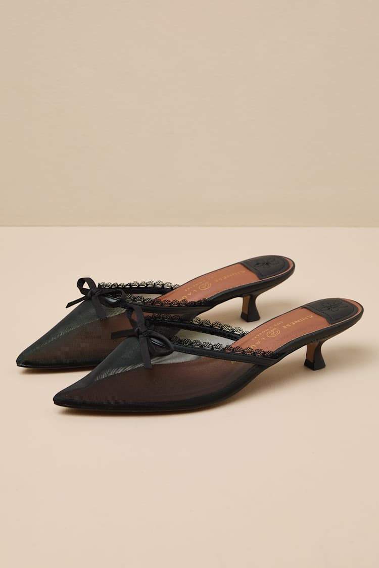 Black Mesh Kitten Heel