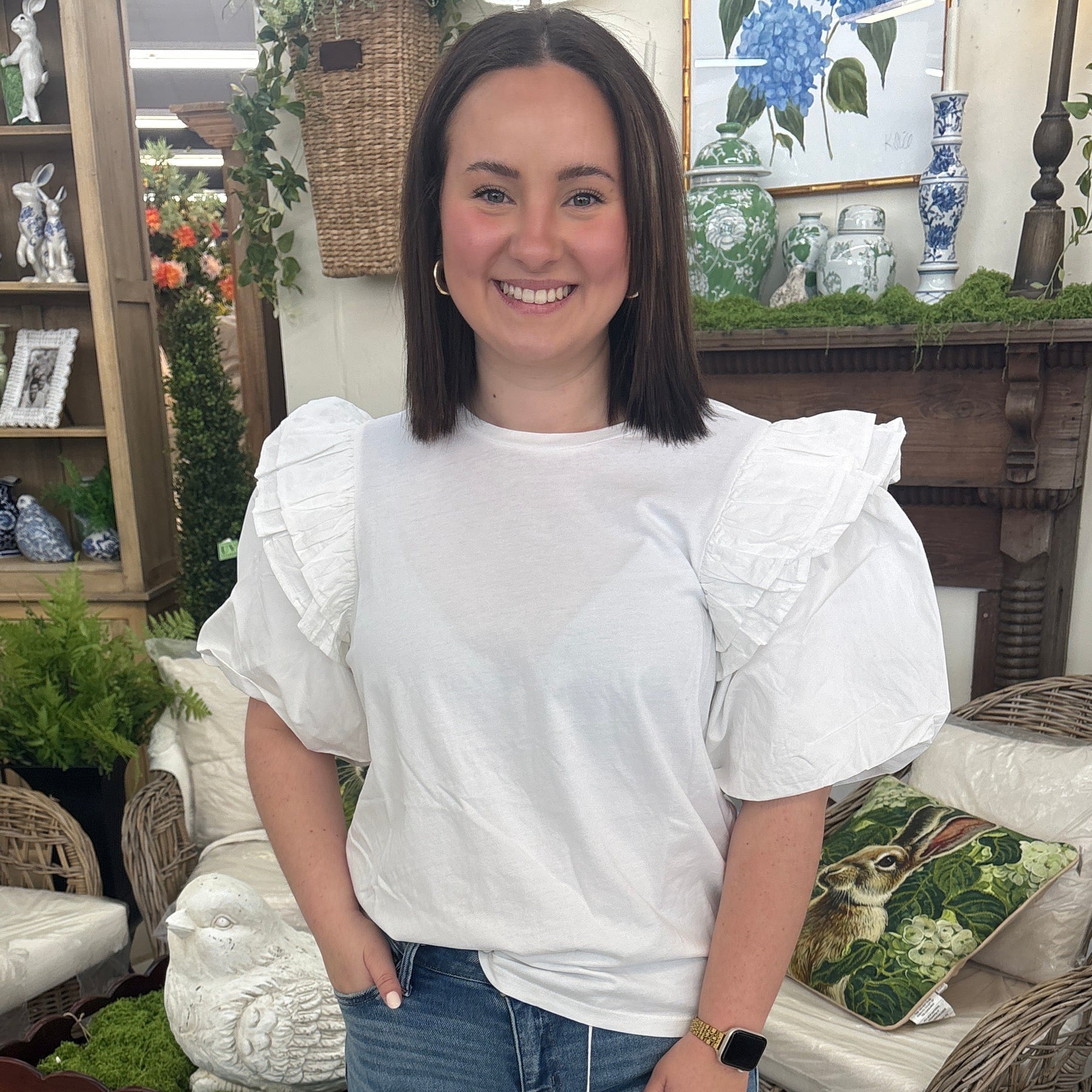 Designed to stand out while keeping things easy, this puff-sleeve tee is flattering and fun. Available in pink and white, it dresses up with skirts or down with denim and sandals for effortless style.